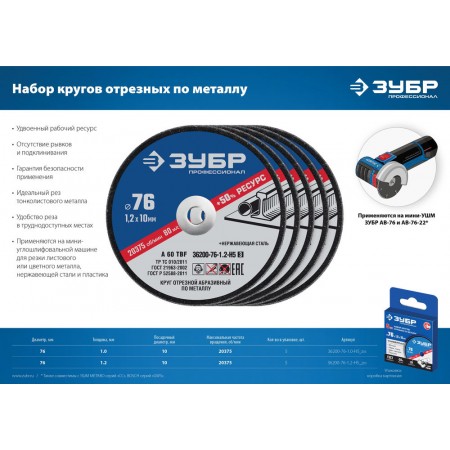 Отрезной круг Х-2 76 x 1.0 мм, для УШМ ЗУБР 36200-76-1.0-H5_z03