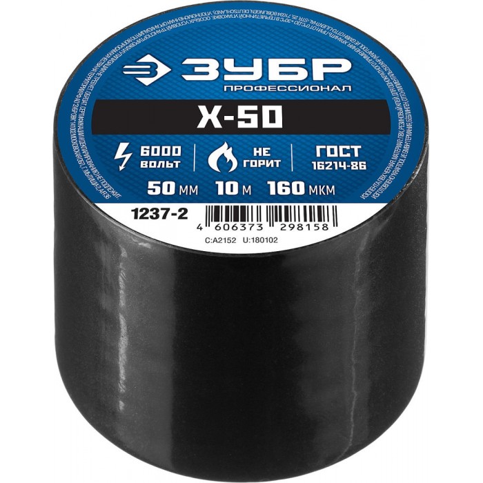 Изолента ПВХ Х-50 50 мм x 10 м, 6000 В, черная ЗУБР Профессионал 1237-2