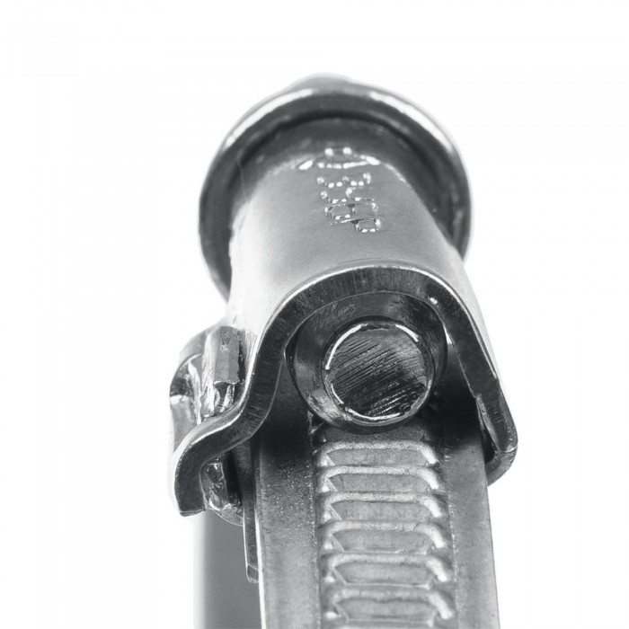 Червячный хомут состоит из штампованной ленты и винта с червячной резьбой. Накатная лента имеет гладкую внутреннюю поверхность, которая защищает шланг от повреждений. При вращении винта лента сжимается, благодаря чему создается надежное и герметичное соединение шлангов, различных труб, и т.д. Червячный винт снабжен шестигранной головкой под ключ 8 мм и шлицем PH, что позволяет использовать при монтаже гаечный ключ или шлицевую отвертку.