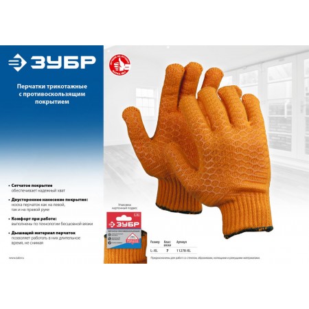 Перчатки трикотажные HARD L-XL, противоскользящее двустороннее перекрестное покрытие ЗУБР 11278-XL