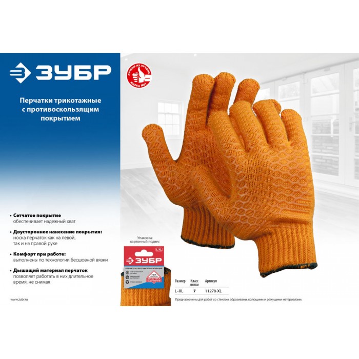 Перчатки ЗУБР предназначены для защиты рук от общих производственных загрязнений и скольжения. Оптимальны для работ со скользкими поверхностями.