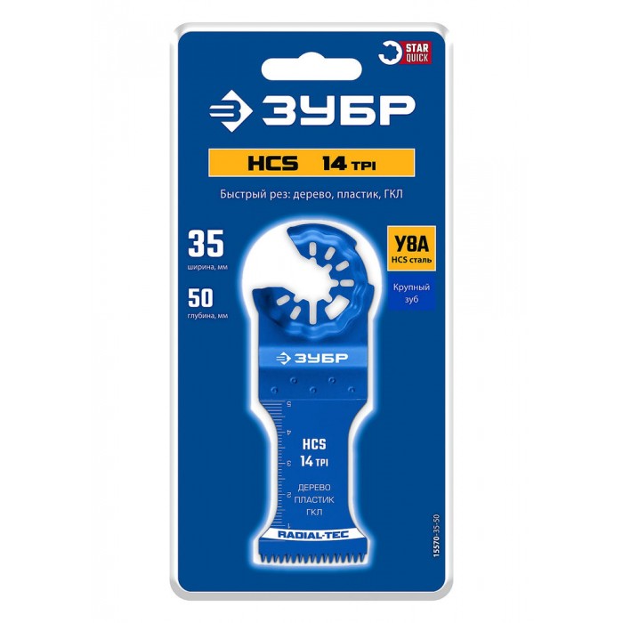 Полотно пильное HCS 35 x 50 мм, 14TPI, быстрый рез: дерево, пластик, ГКЛ ЗУБР StarQuick 15570-35-50