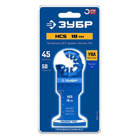 Полотно пильное HCS 45 x 50 мм, 18TPI, чистый рез: дерево, пластик, ДСП, ГКЛ ЗУБР StarQuick 15571-45-50