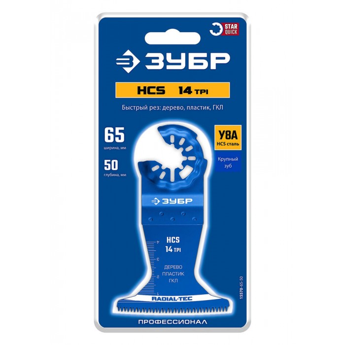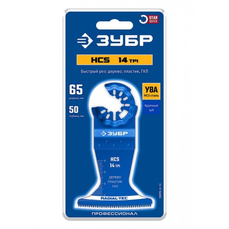Полотно пильное HCS 65 x 50 мм, 14TPI, быстрый рез: дерево, пластик, ГКЛ ЗУБР StarQuick 15570-65-50
