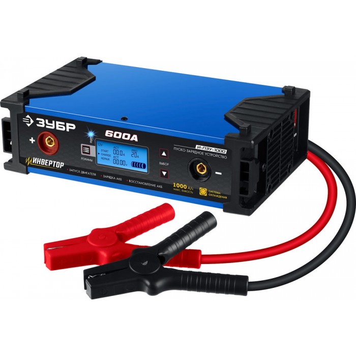 Инверторное пуско-зарядное устройство предназначено для запуска двигателя с разряженным аккумуляторм и зарядки аккумуляторных батарей легковых и грузовых автомобилей, мотоциклов, снегоходов, катеров (лодок), газонокосилок, тракторов, гидроциклов и т.д. Зарядные устройства ЗУБР управляются с помощью микропроцессора. Данные устройства обладают высокой эффективностью и имеют защиту от ошибок, которые может допустить пользователь. Микропроцессор зарядного устройства оценивает состояние батареи и соответствующим образом устанавливает силу зарядного тока и напряжение (в зависимости от типа АКБ и её состояния). Это позволяет наиболее эффективно зарядить аккумулятор и продлить срок его службы.