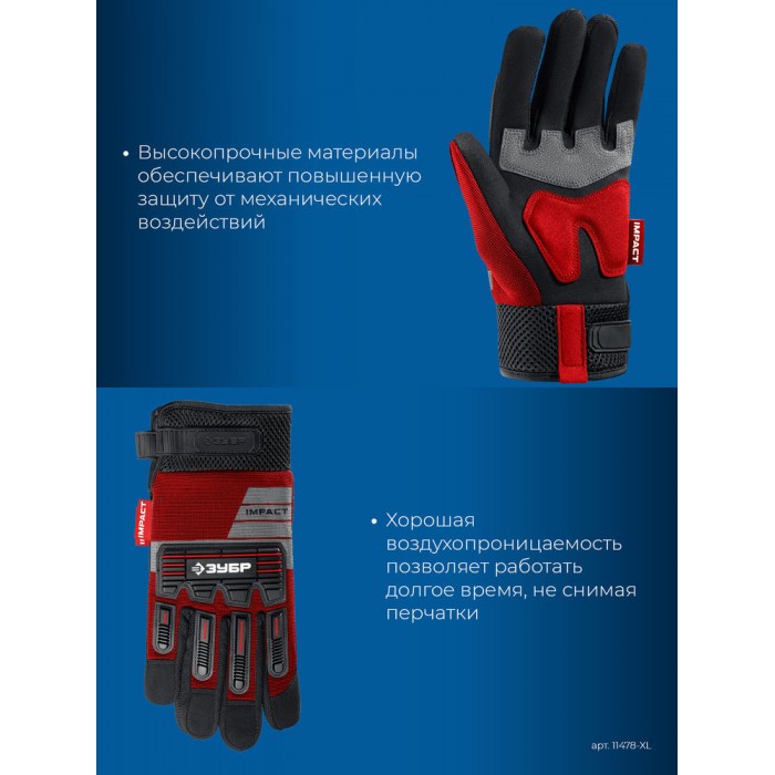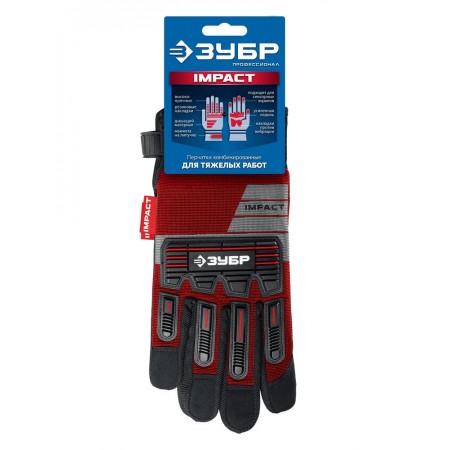Перчатки комбинированные IMPACT р.L (9), красные, антивибрационные, противоударные ЗУБР Профессионал 11478-L