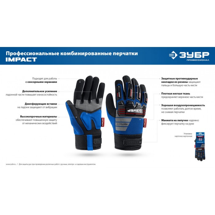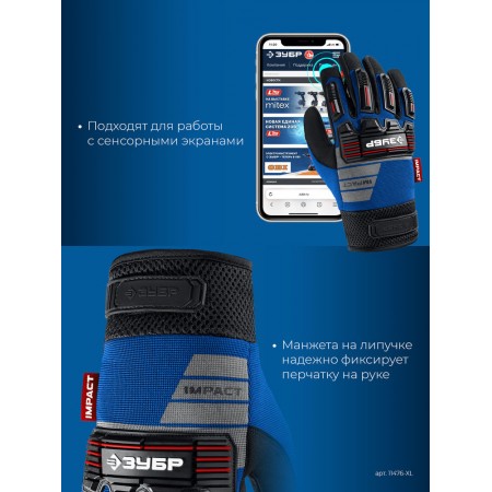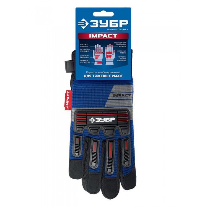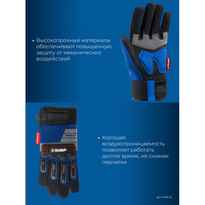 Перчатки комбинированные IMPACT р.L (9), синие, антивибрационные, противоударные ЗУБР Профессионал 11476-L