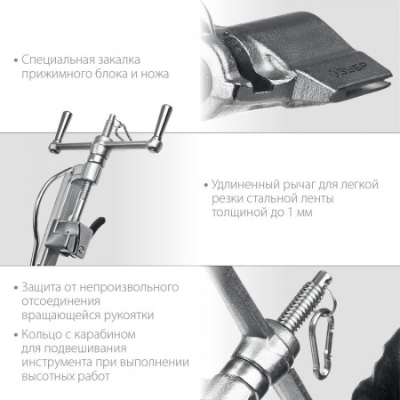 Инструмент для натяжения стальной ленты на опорах ВЛИ и крепежа тары. 2 в 1 для надёжной стяжки и обрезки.