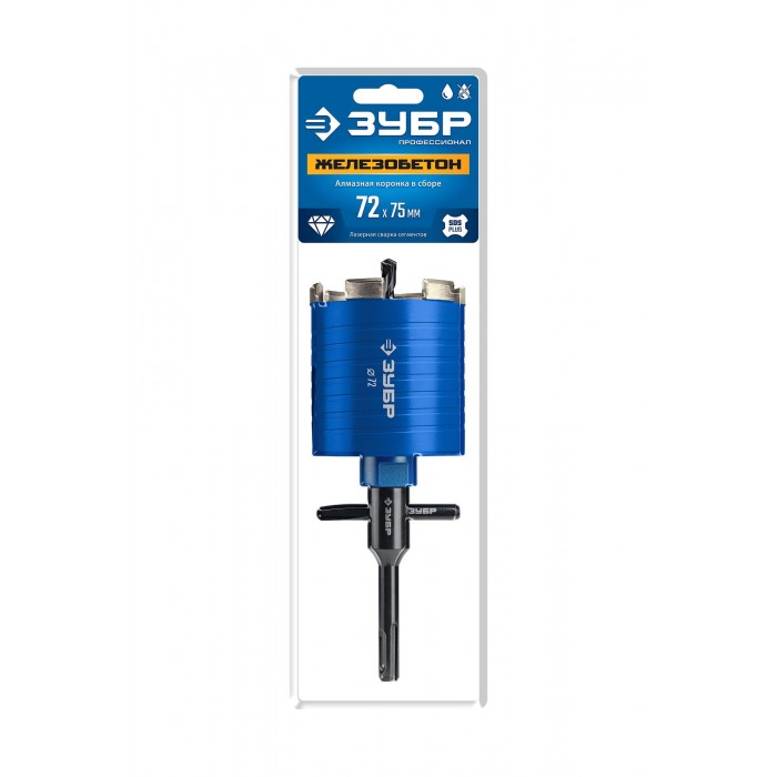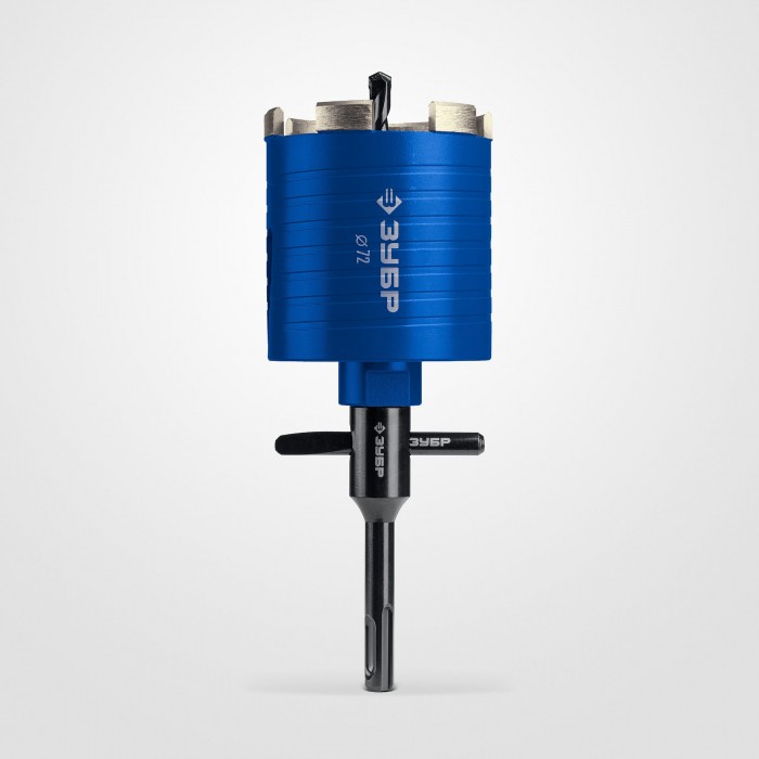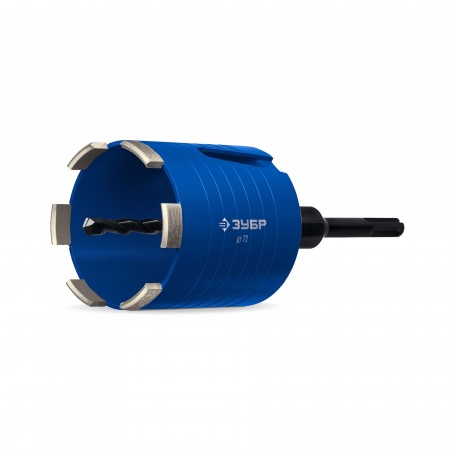 ЗУБР Железобетон 72мм (сухое сверление с микроударом, рабочая глубина 75мм, лазерная сварка) алмазная сегментная коронка для подрозетников (29875-72)