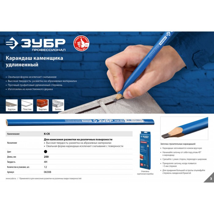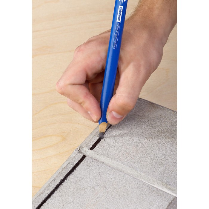Строительный карандаш каменщика имеет овальную форму, что позволяет ему не скатываться с наклонных поверхностей.