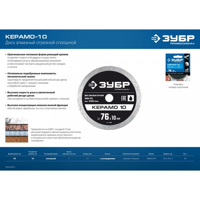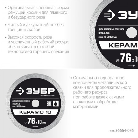 Высокий уровень качества профессиональных отрезных алмазных дисков ЗУБР гарантирован комплексной системой контроля всех этапов производственного процесса.