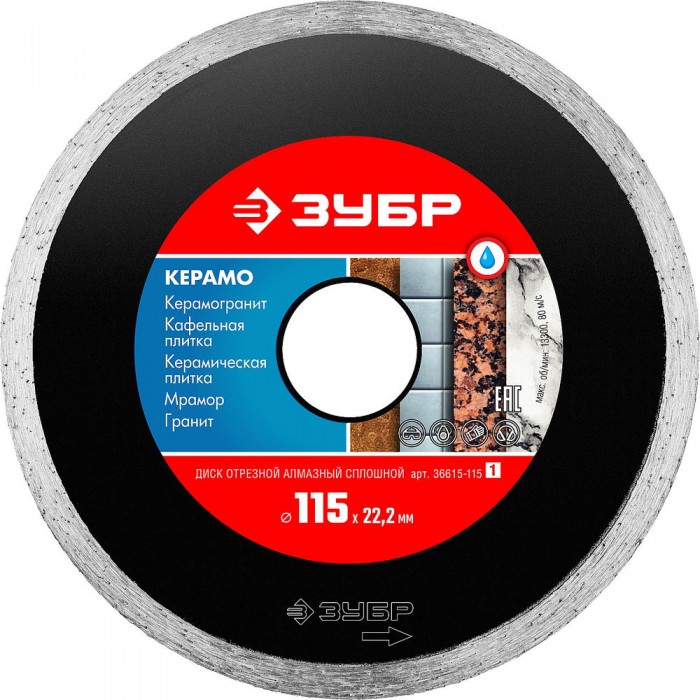 Диск алмазный сплошной Керамо-22 d 115 мм, 22.2 мм, 5 x 1.9 мм ЗУБР 36615-115_z01