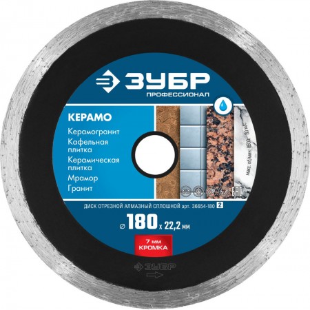 Диск алмазный сплошной Керамо-22 d 180 мм, 22.2 мм, 7 x 2.2 мм ЗУБР Профессионал 36654-180_z02