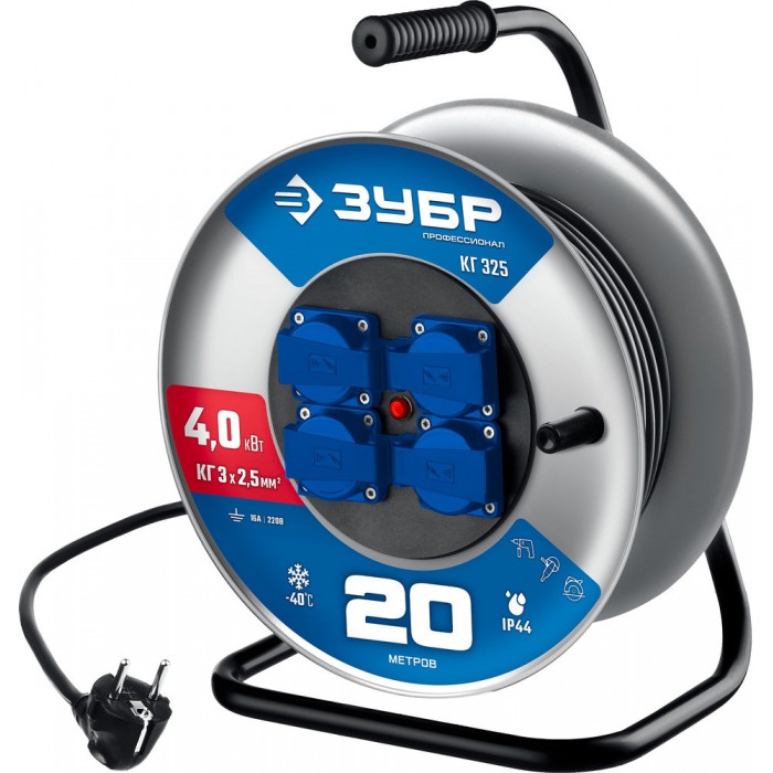 - Катушка позволяет легко сматывать и разматывать кабель, обеспечивая мобильное перемещение и компактное хранение.