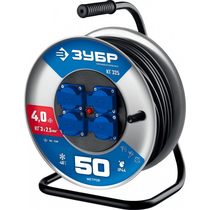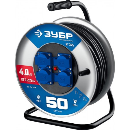 Удлинитель силовой на стальной катушке КГ-325 КГ 3 x 2.5 мм2, 50 м, 4000 Вт, IP44 ЗУБР Профессионал 55079-50_z01