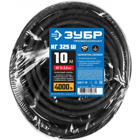 Удлинитель-шнур силовой КГ-325-Ш КГ 3 x 2.5 мм2, 10 м, 4000 Вт, IP44 ЗУБР Профессионал 55017-10