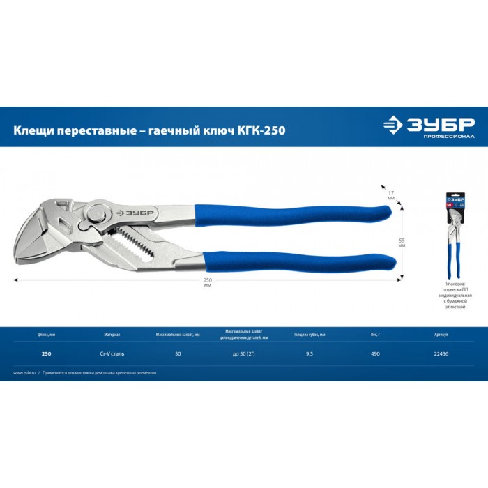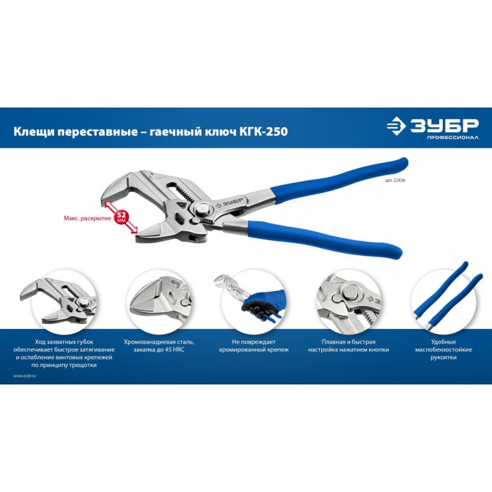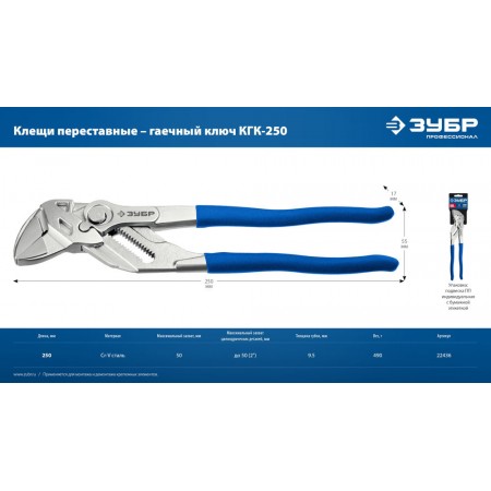 Клещи переставные-гаечный ключ КГК-250 250 мм ЗУБР 22436