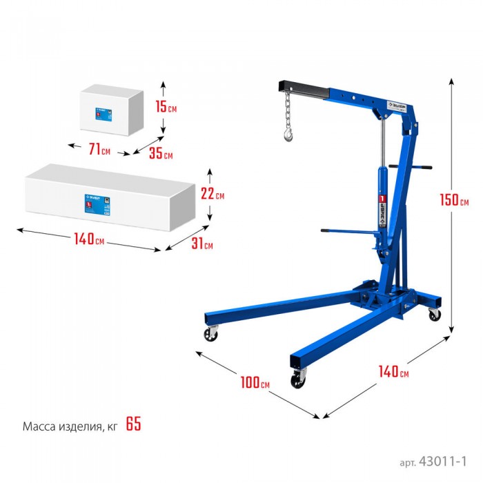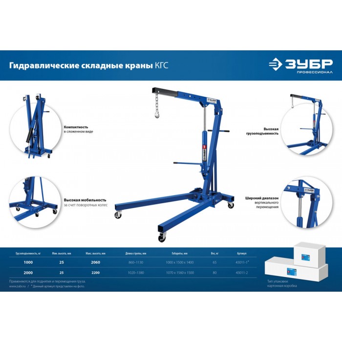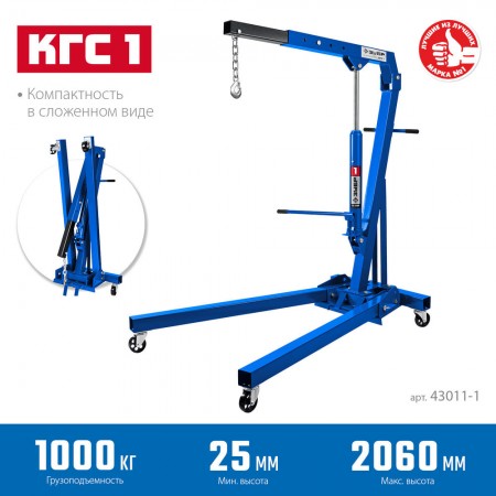 Кран гидравлический складной КГС-1 1 т, 25 - 2060 мм ЗУБР Профессионал 43011-1