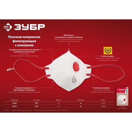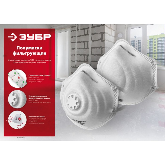 Полумаска фильтрующая плоская класс защиты FFP2 с клапаном выдоха ЗУБР 11166-2_z01