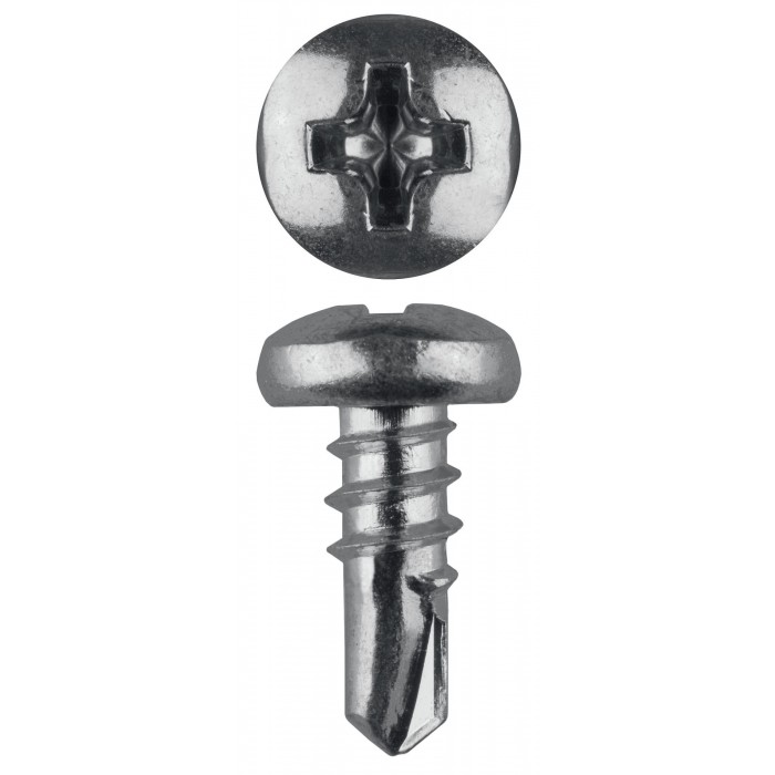 Саморезы со сферической головкой и сверлом для листового металла изготовлены из стального прутка с высоким содержанием углерода. Контроль за геометрией самореза начинается с калибровки прутка и заканчивается тщательной проверкой размеров готового изделия. Нормативная твердость стали достигается термической обработкой. Поверхностная твердость мин. 560HV, твердость в сердцевине 240-425HV. Саморезы легко вкручиваются обычным шуруповертом или отверткой с крестообразным шлицем PH2 (DIN). Предварительное сверление в скрепляемых материалах не требуется.