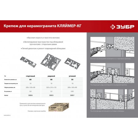 Стальные крепежные скобы для керамогранита позволяют быстро и технологично произвести облицовку здания. Монтаж производится на обрешетку при устройстве вентилируемого фасада. Облицовка керамогранитом отличается прочностью, практичностью и долговечностью.