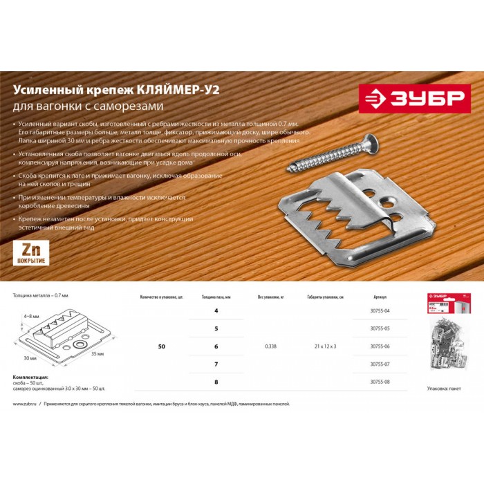 Для скрытого крепления тяжелой вагонки, имитации бруса и блок-хауса, панелей МДФ, ламинированных панелей.