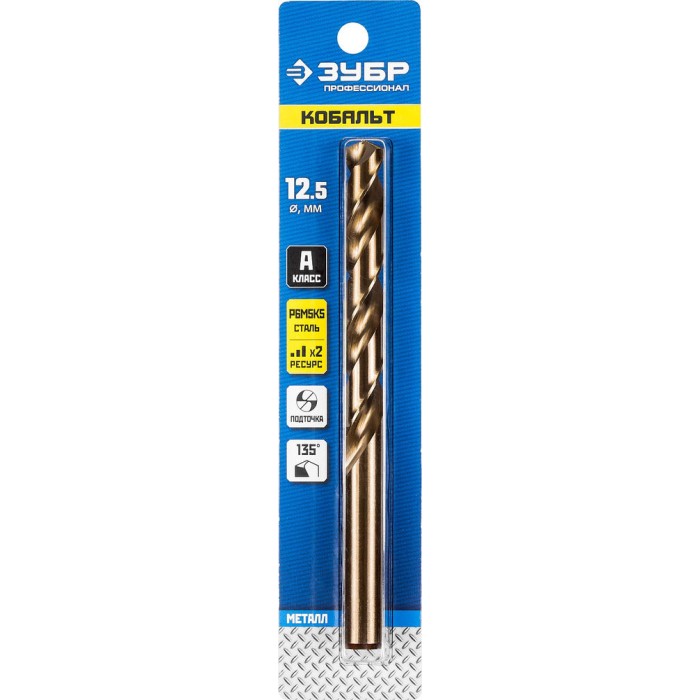 Сверло по металлу 12.5 х 151 мм, сталь Р6М5К5, класс А Кобальт ЗУБР Профессионал 29626-12.5
