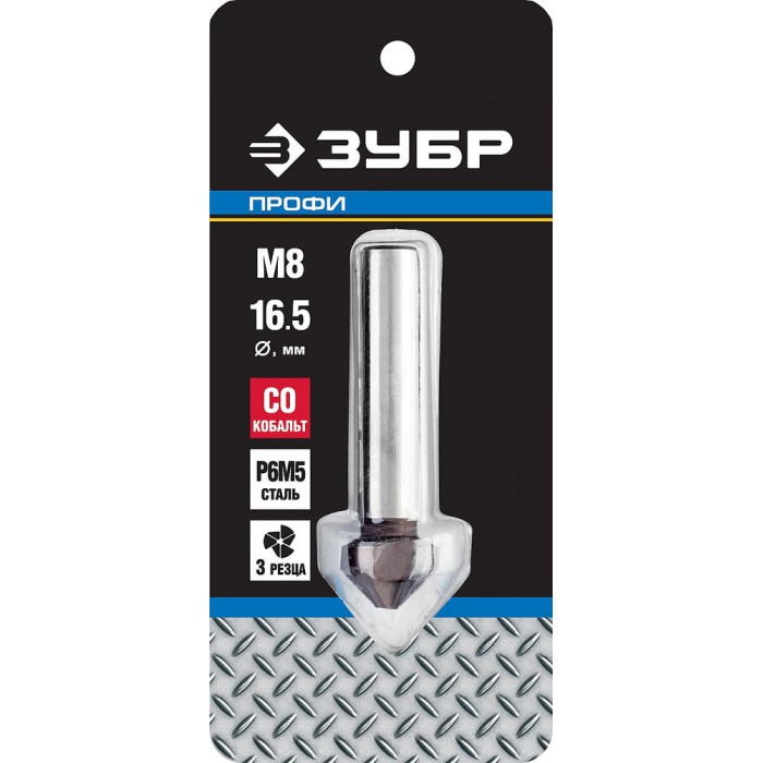 - Изготовлен из быстрорежущей стали Р6М5. Три острых и прочных кромки обеспечивают легкость зенкования и предотвращают нарушение круговой геометрии.