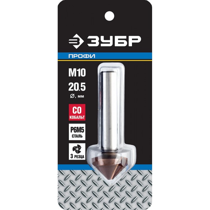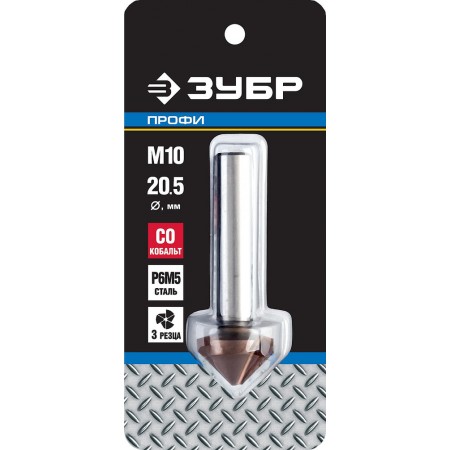 Конусный зенкер 20.5 x 63 мм, для раззенковки М10, кобальтовое покрытие Кобальт ЗУБР Профессионал 29732-10