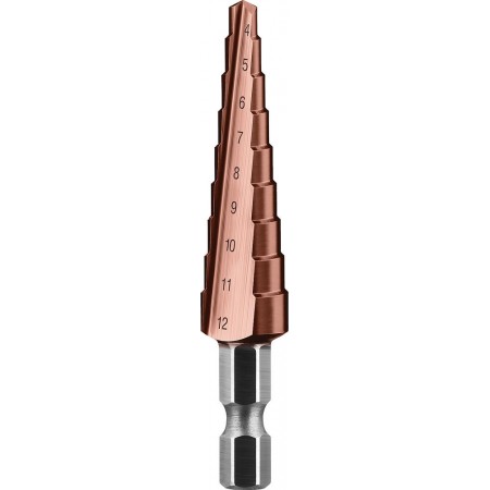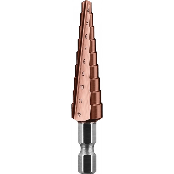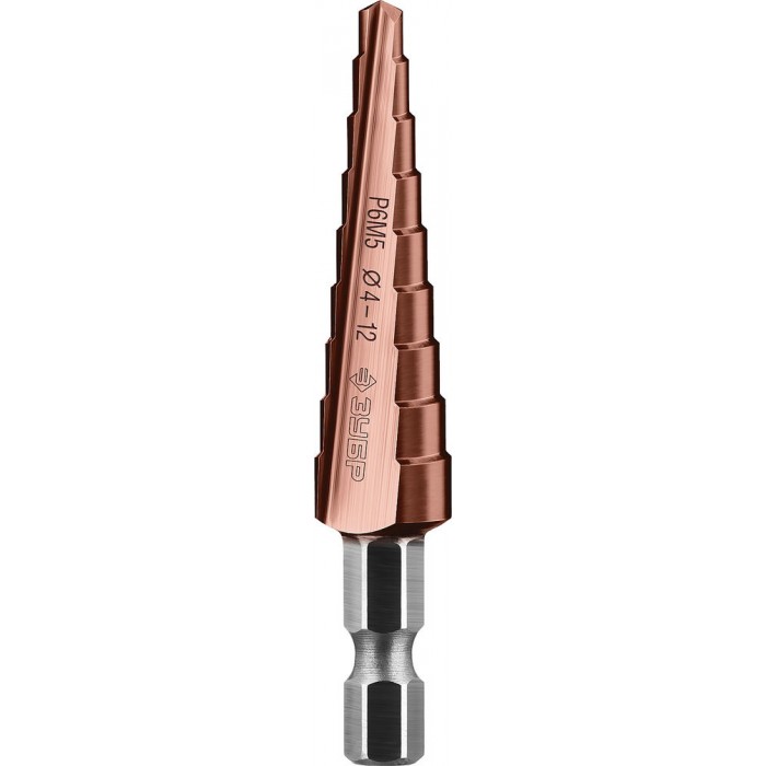 Ступенчатое сверло 4-12 мм, 9 ступеней, сталь Р6М5, кобальтовое покрытие Кобальт ЗУБР Профессионал 29672-4-12-9_z01