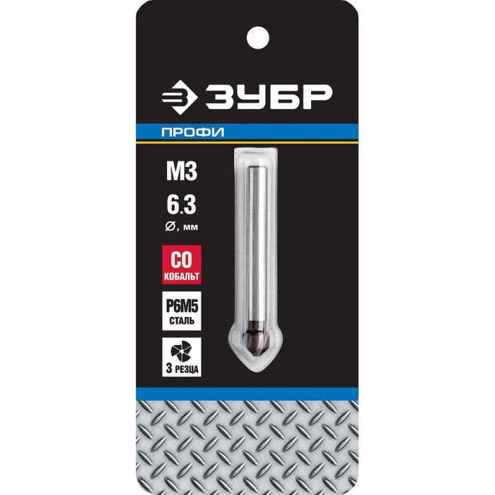 Конусный зенкер 6.3 x 45 мм, для раззенковки М3, кобальтовое покрытие Кобальт ЗУБР Профессионал 29732-3