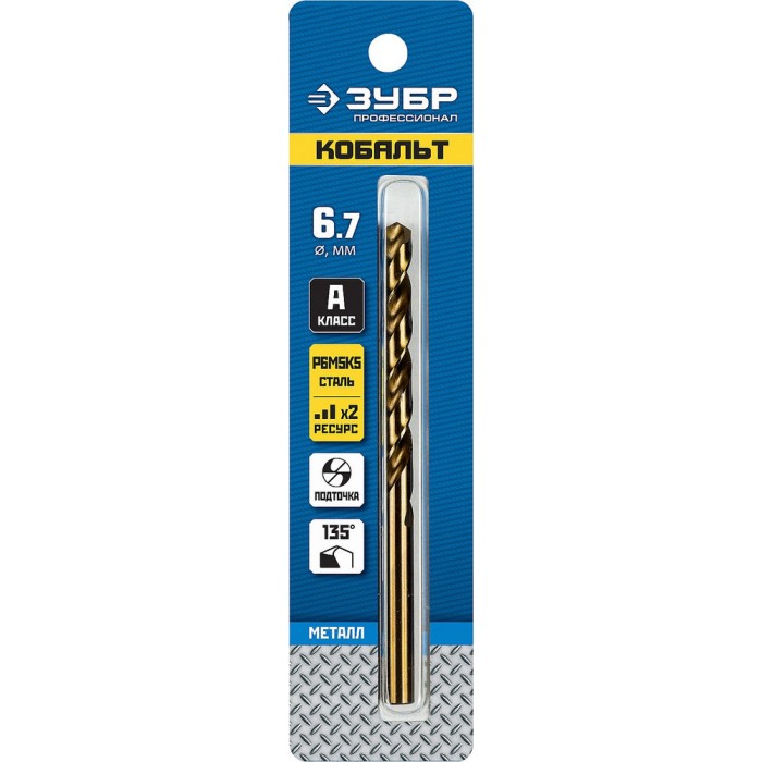 Сверло по металлу 6.7 х 109 мм, сталь Р6М5К5, класс А Кобальт ЗУБР Профессионал 29626-6.7