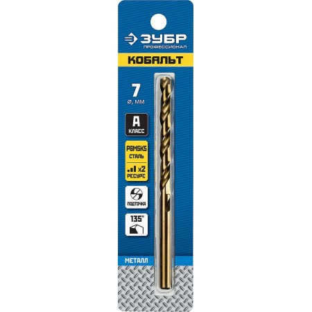 Сверло по металлу 7.0 х 109 мм, сталь Р6М5К5, класс А Кобальт ЗУБР Профессионал 29626-7