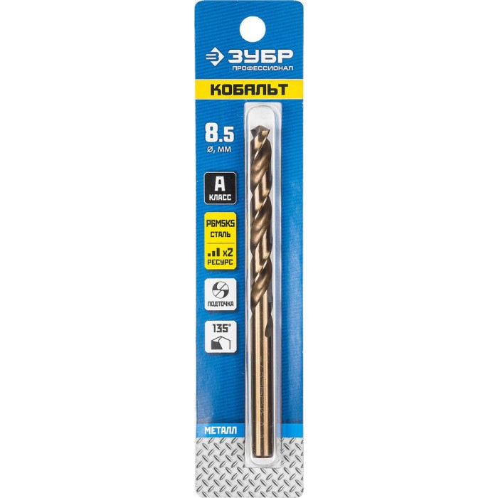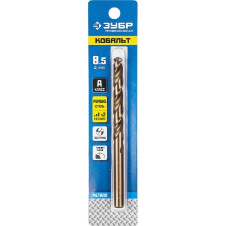 Сверло по металлу 8.5 х 117 мм, сталь Р6М5К5, класс А Кобальт ЗУБР Профессионал 29626-8.5