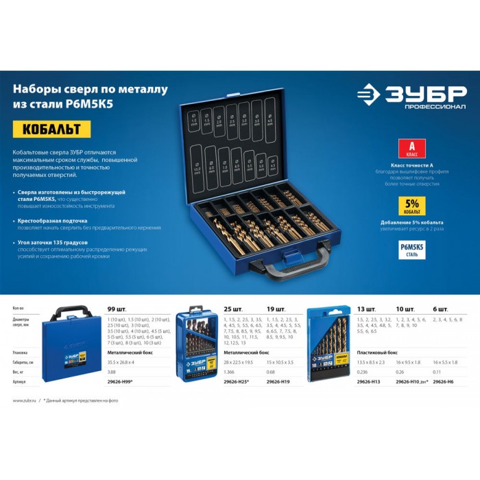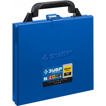 Набор сверл по металлу 99 шт (1-10 мм), сталь Р6М5К5, класс А, мет.бокс Кобальт ЗУБР Профессионал 29626-H99