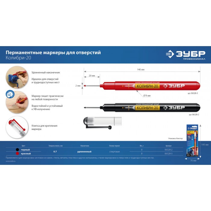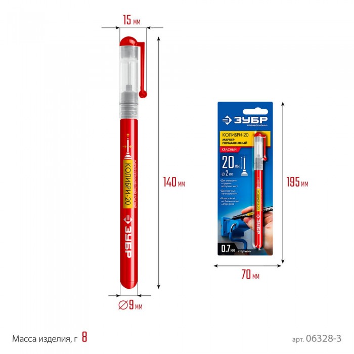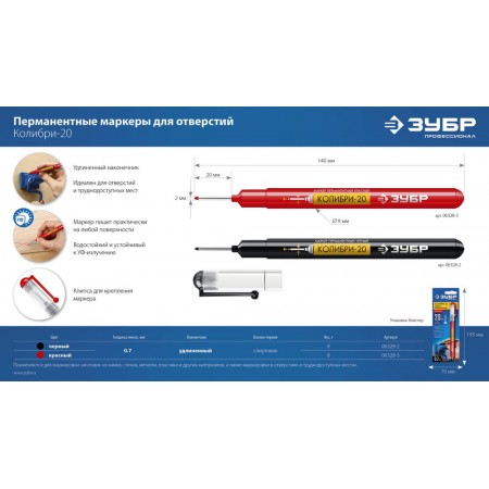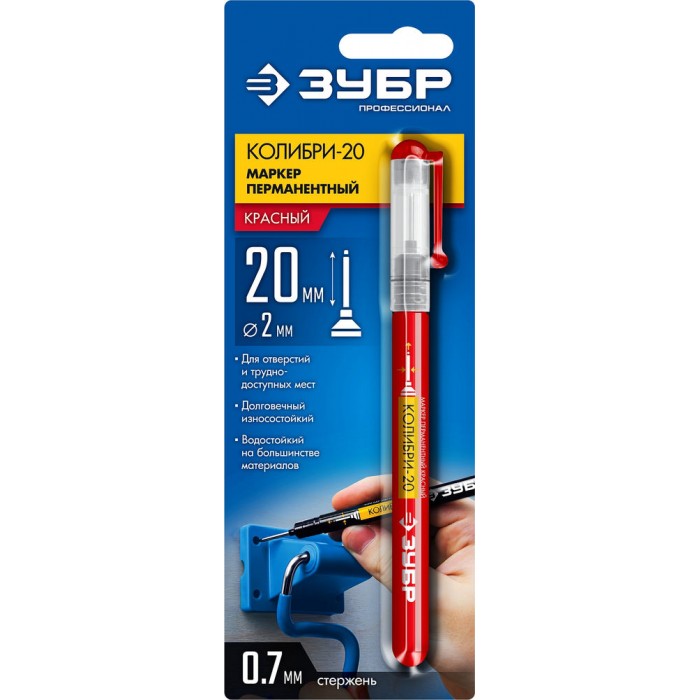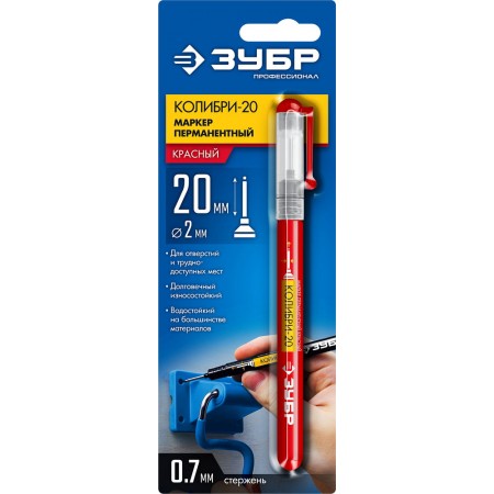Перманентный маркер для отверстий Колибри-20 красный, наконечник L 20 мм, 2 мм ЗУБР 06328-3