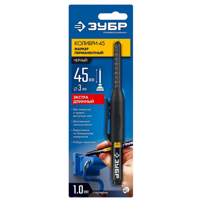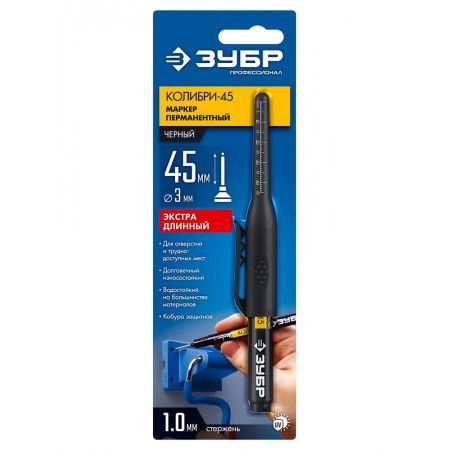 Маркер перманентный с прямым наконечником. Экстра-большой объем заливаемых чернил делает данный маркер самым долговечным среди перманентных маркеров ЗУБР. Так как перманентный маркер пишет практически на любой поверхности, он применяется в различных сферах, где требуется нанести надпись, рисунок, знак или указатель. Широкий наконечник позволяет оставить заметную издалека маркировку.