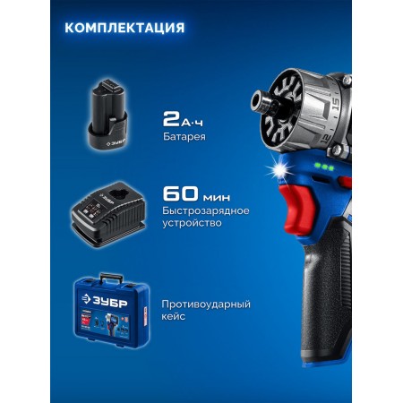 - Современный аккумулятор повышенной емкости 2.0 А*ч позволяет инструменту работать дольше и эффективнее