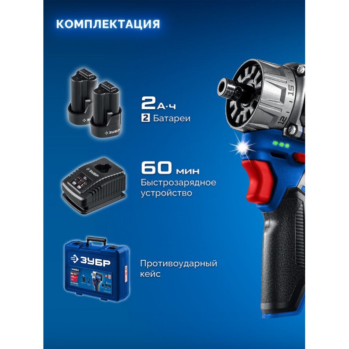 - Два современных аккумулятора повышенной емкости 2.0 А*ч в комплекте позволяют инструменту работать практически без остановки