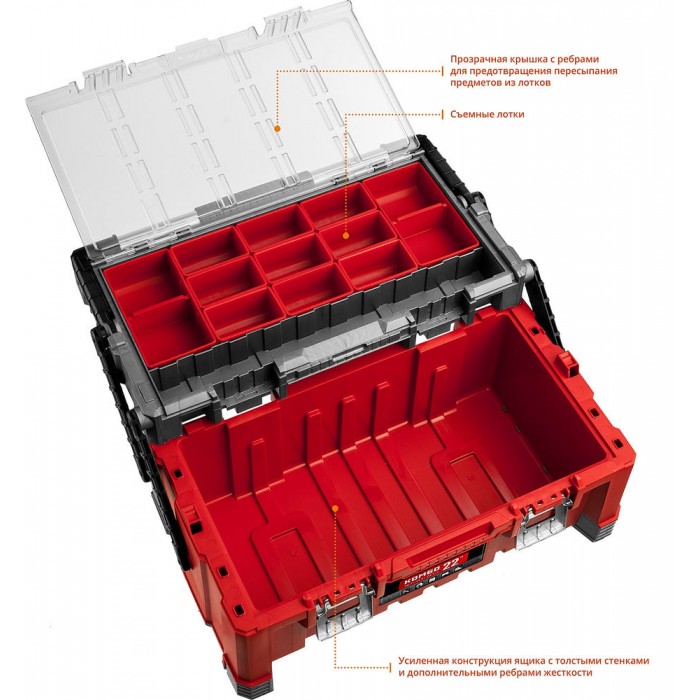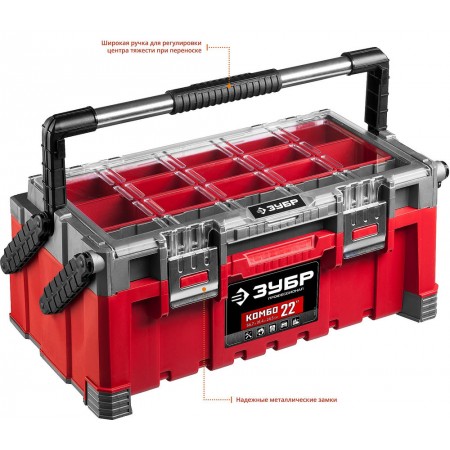 Пластиковый ящик для инструментов 567 х 314 х 245 мм 22" Профессионал ЗУБР КОМБО-22 38138-22