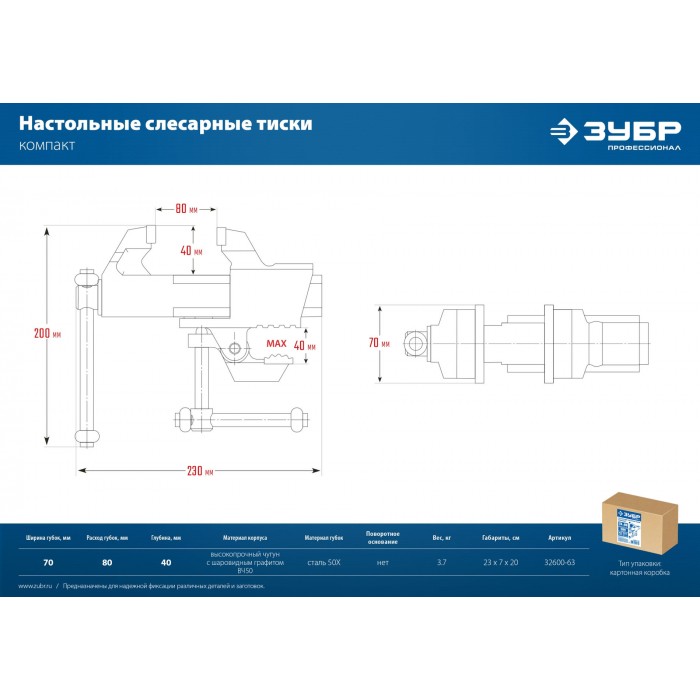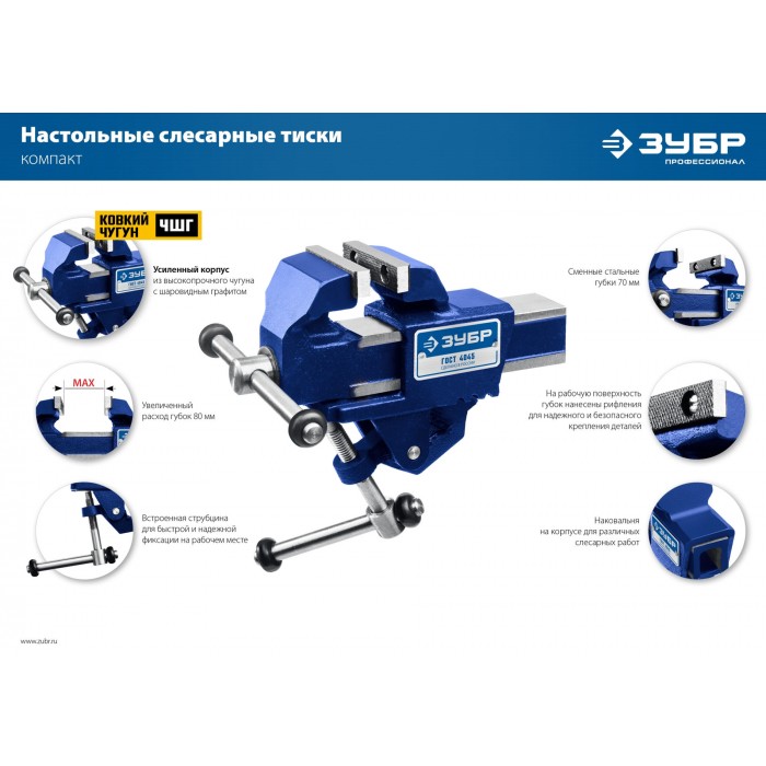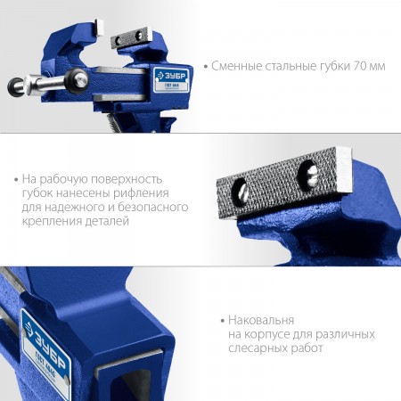 Слесарные тиски 70 мм Профессионал ЗУБР Компакт 32600-63