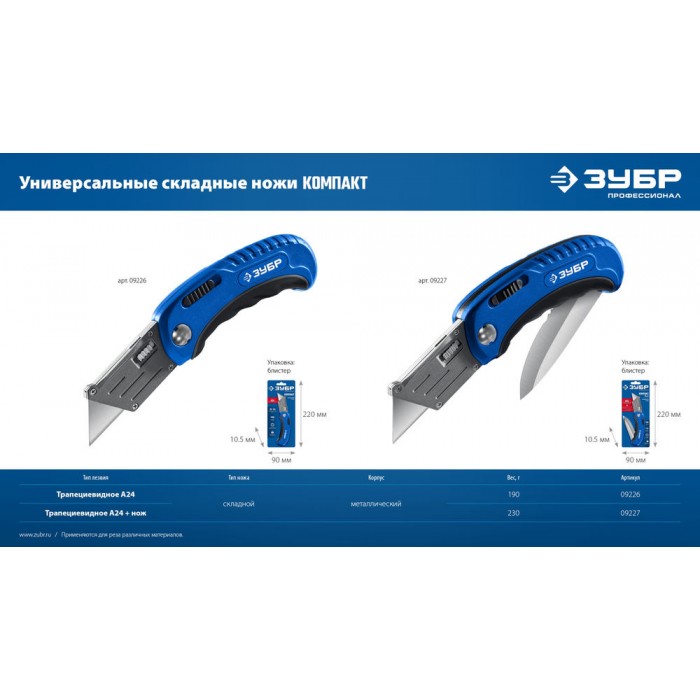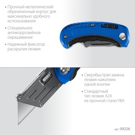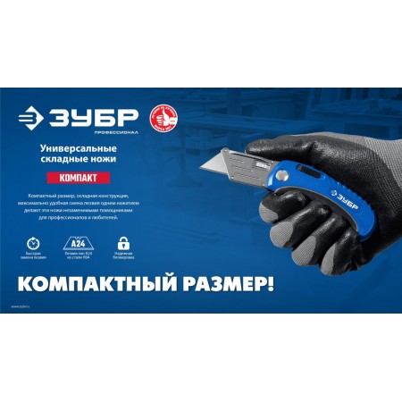 Универсальный складной нож с трапециевидным лезвием ЗУБР Компакт-А24 09226
