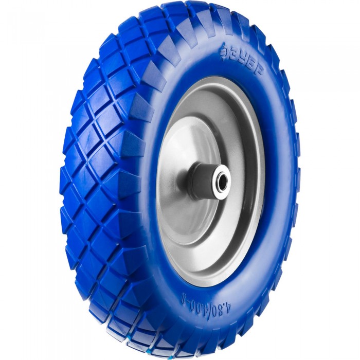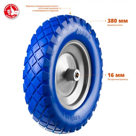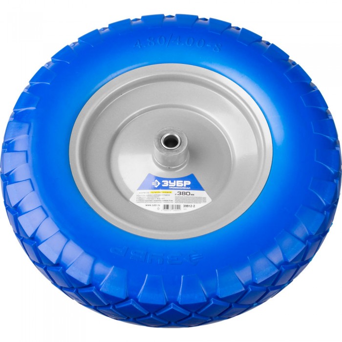 Полиуретановое колесо КПУ-2, 4" х 380 мм, для тачек арт. 39903, 39974, стальной диск, подшипник 16 мм ЗУБР Профессионал 39912-2