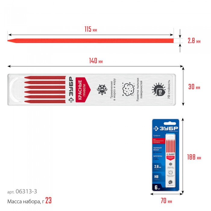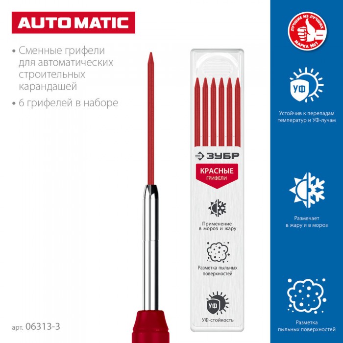 Набор грифелей для карандашей АСК подходият для нанесения разметки на большинство материалов. Не выгорают на солнце, устойчив к температурным перепадам. Безопасы для человека и окружающей среды, т.к. не содержат токсических веществ.