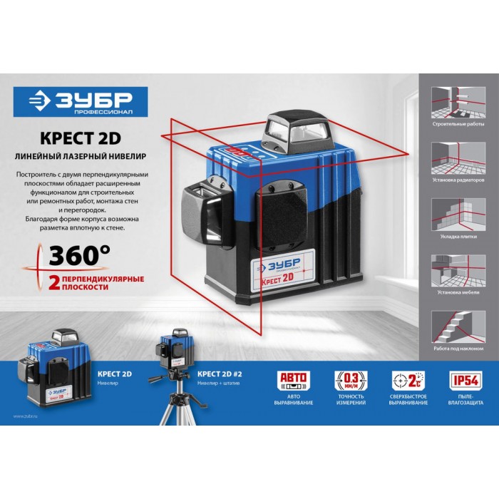 - Функция самовыравнивания устраняет необходимость настройки, гарантирует максимальную точность при разметке.