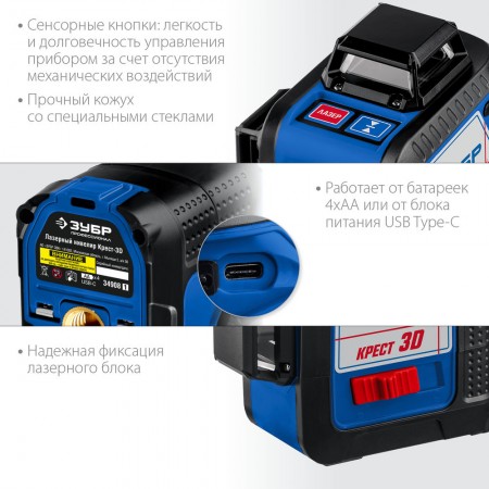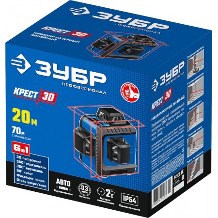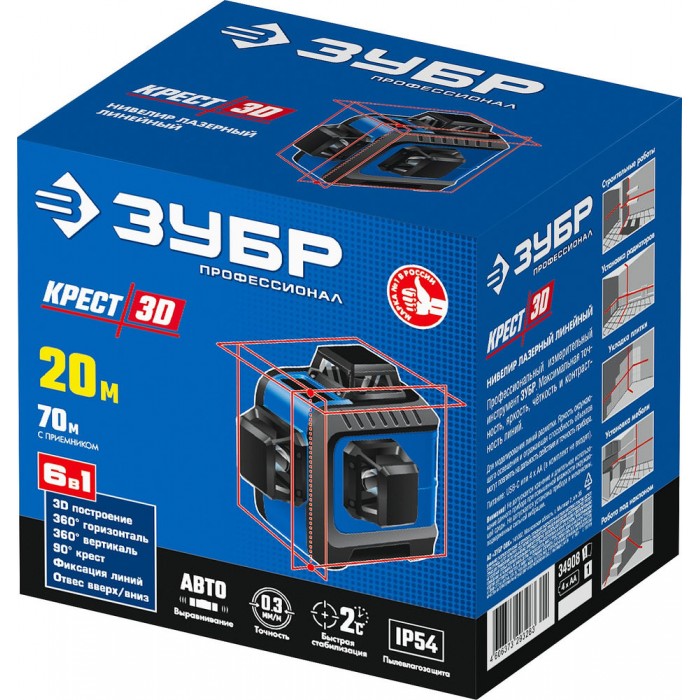 - 3 режима проецирования линий: горизонтальная и две вертикальные линии с развёрткой 360°, благодаря чему луч будет виден в любой точке.