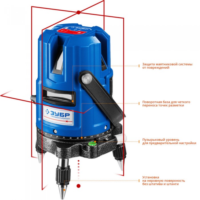 - Функция самовыравнивания устраняет необходимость настройки, гарантирует максимальную точность при разметке.