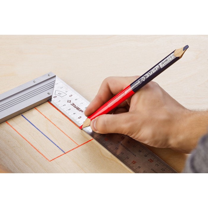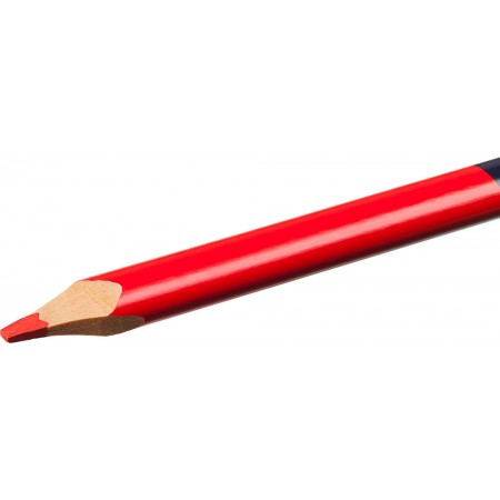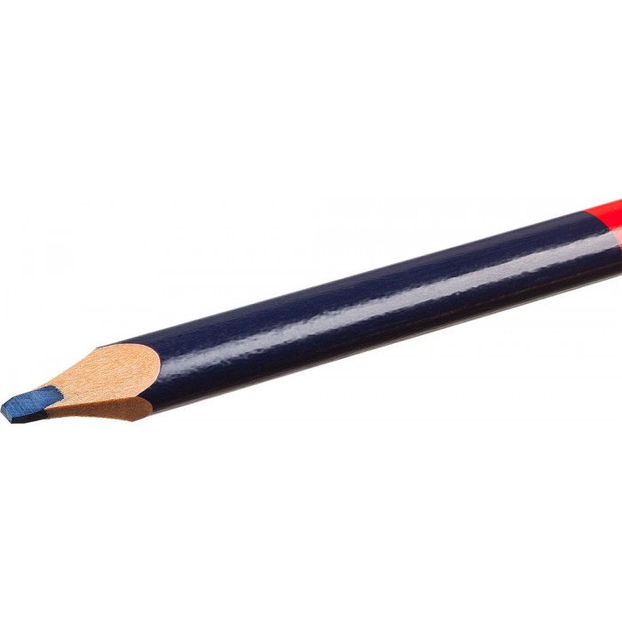 Двухцветный строительный карандаш имеет овальную форму, что позволяет ему не скатываться с наклонных поверхностей.