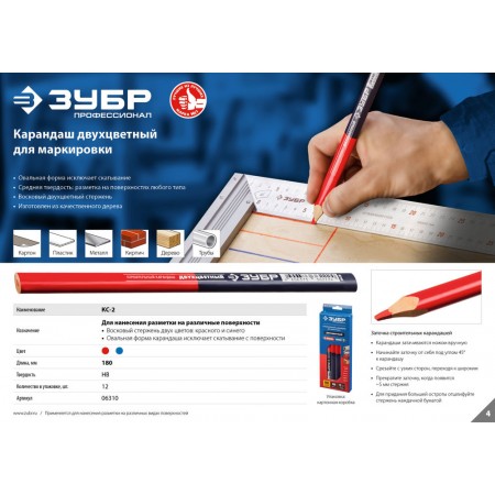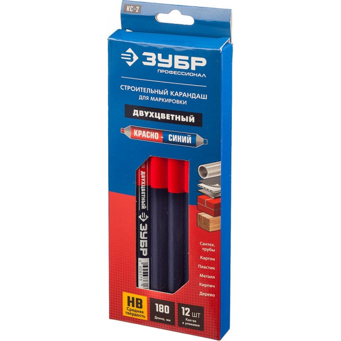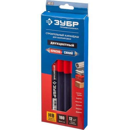Строительный карандаш КС-2 180 мм, HB, двухцветный ЗУБР 06310