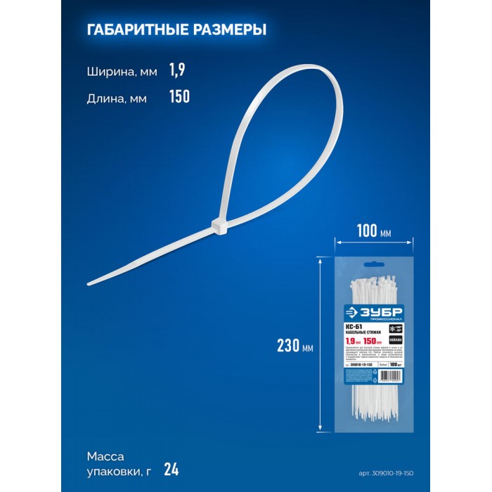 Для быстрой стяжки кабелей электропроводки в пучок и их крепления к различным элементам конструкции при проведении электромонтажных работ.